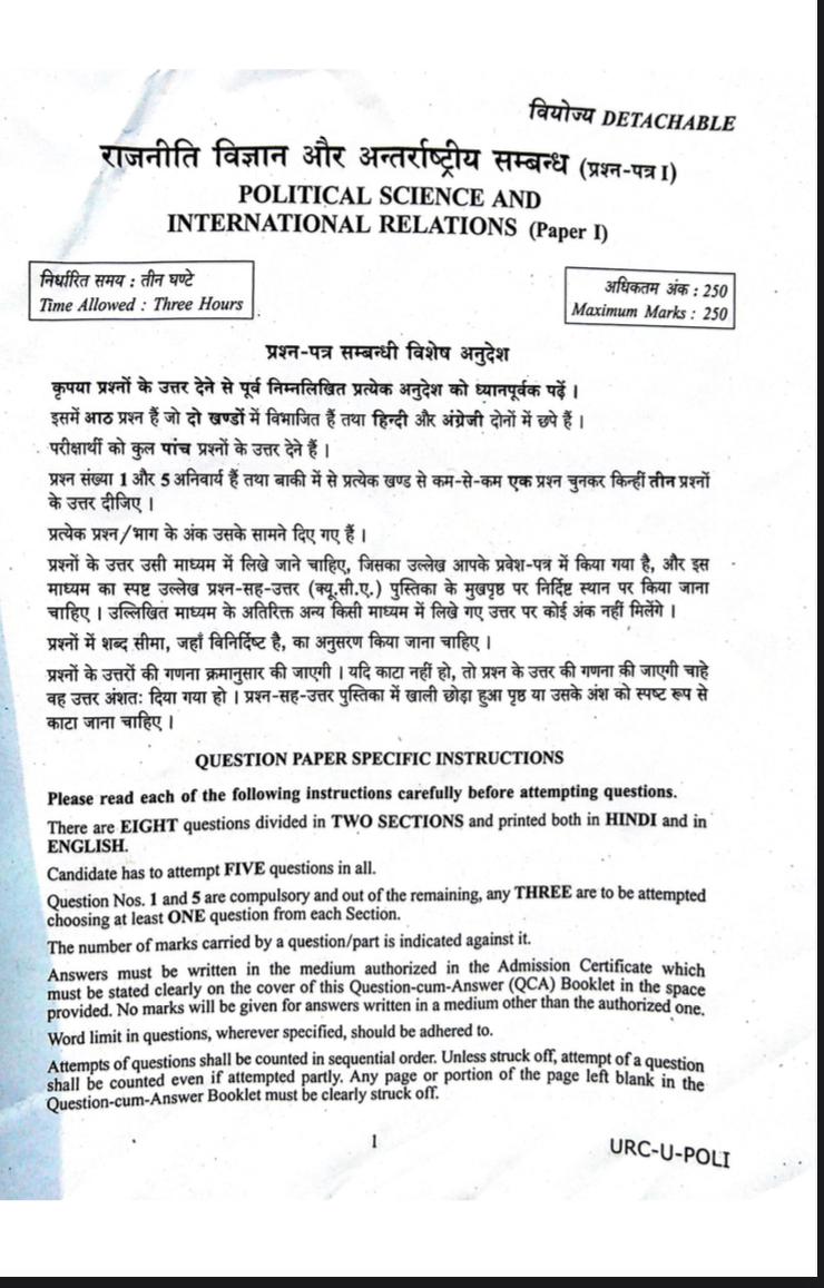 Optional Subject Psir Paper 1 Upsc Mains Civil Services Ias Exam 2020 Question Paper Insightsias
